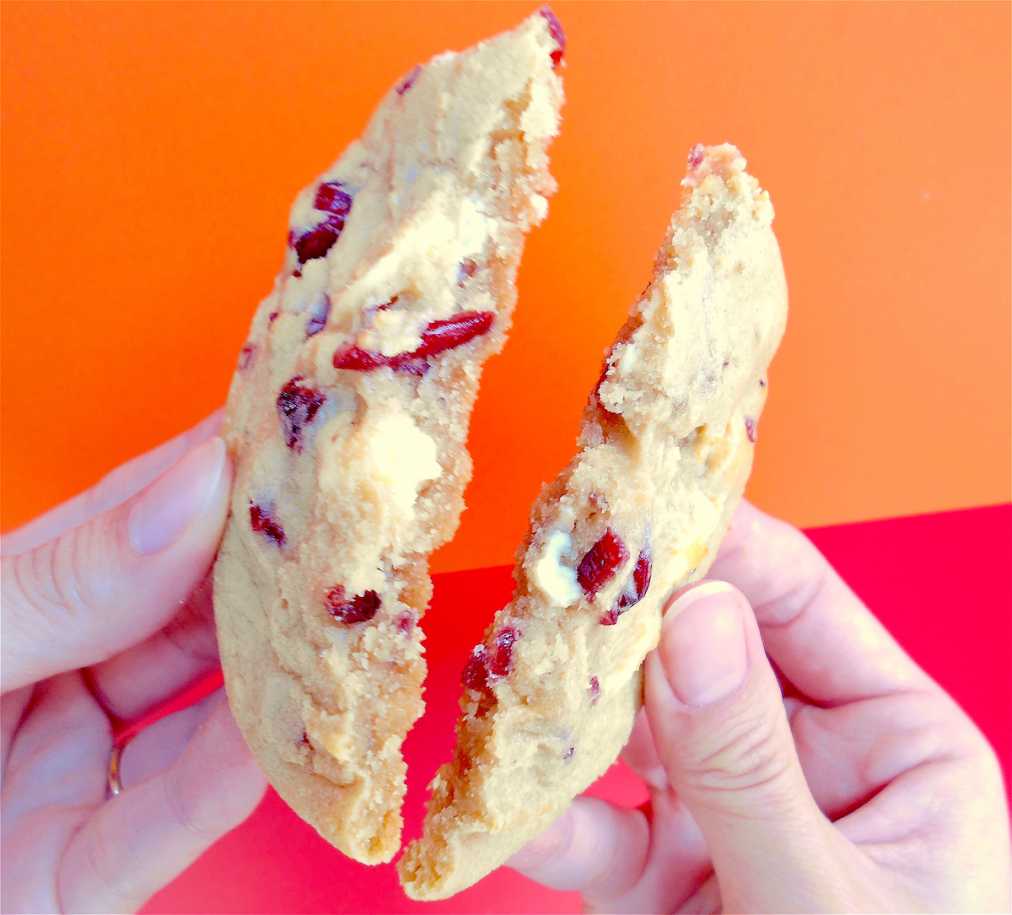 ニュージーランド産のバターや小麦を使って作る焼きたてのクッキーは全部で8種類。写真は「クランベリーホワイトチョコレート」(大350円、小120円)です。しっとりとした柔らかいクッキー生地に、ホワイトチョコレートとクランベリーがたっぷり練り込まれています。