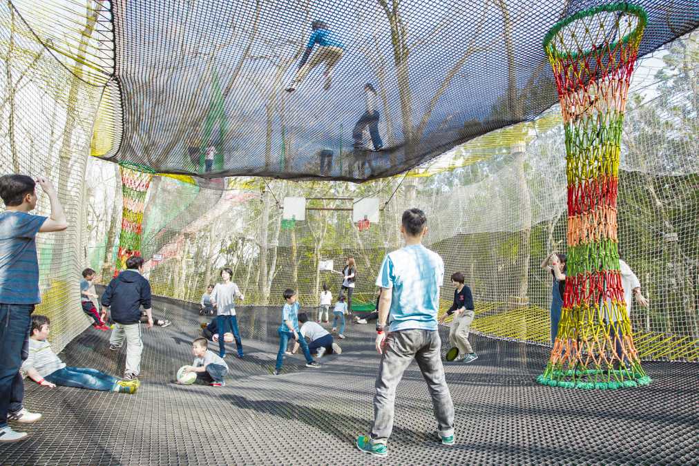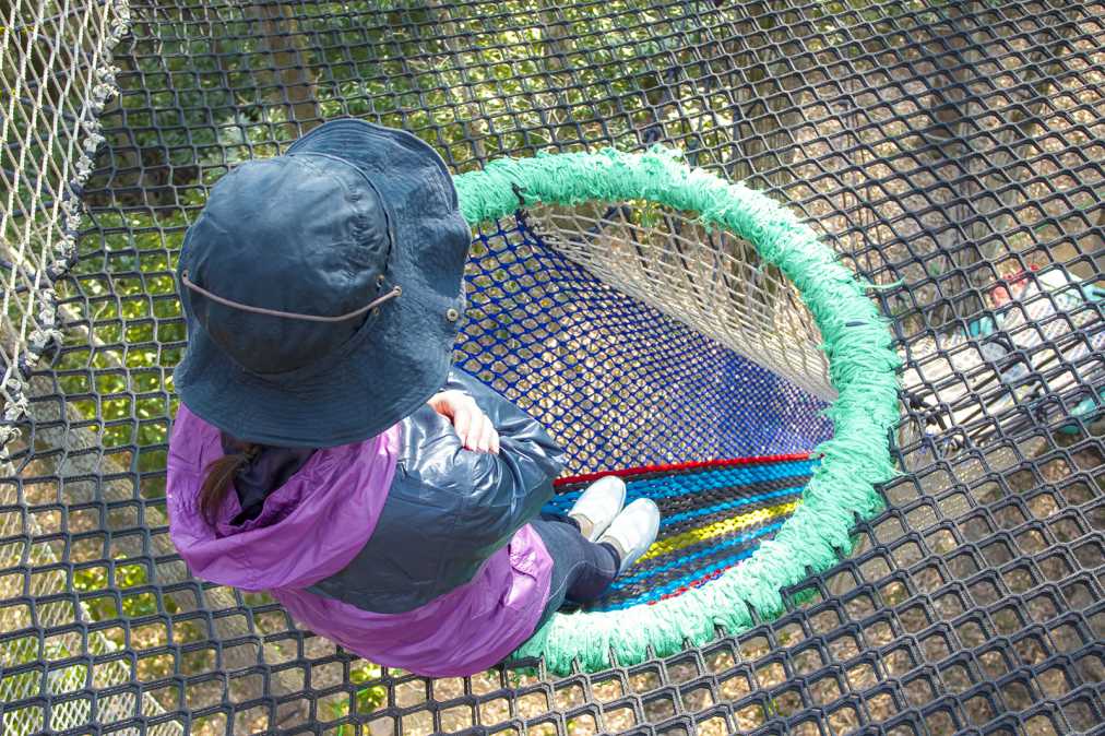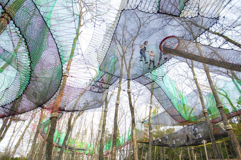 森の中の巨大なハンモック⁉日本初上陸の空中アドベンチャー施設