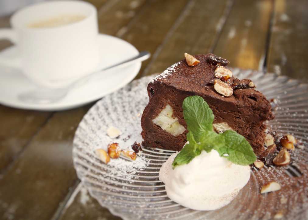 「Tabela—タベラ—」ではデザートやアルコールメニューも充実!写真は、「バナナのガトーショコラ」(680円)。ガトーショコラといえばデザートの定番ですが、こちらのガトーショコラはケーキ店も顔負けの1品で、隠れファンがいるほどなんだとか。