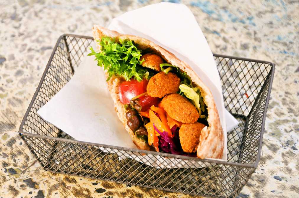 ヒヨコ豆のコロッケと野菜のマリネをサンド。ミントの香りがアクセントになり、味覚からも中東を感じることができる1品です。こちらは16時からのメニュー。
