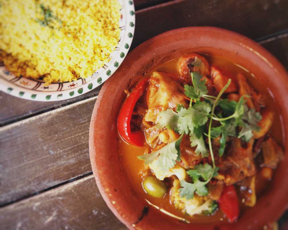 映画とコラボしたメニュー以外にも、通常メニューとしてこだわり食材をふんだんに使った多国籍料理も味わえます。写真は開店当時からの看板メニュー「野菜のクスクス」(1400円)。お肉を一切使っていない、優しい酸味とスパイスの効いたヘルシーな一品です。