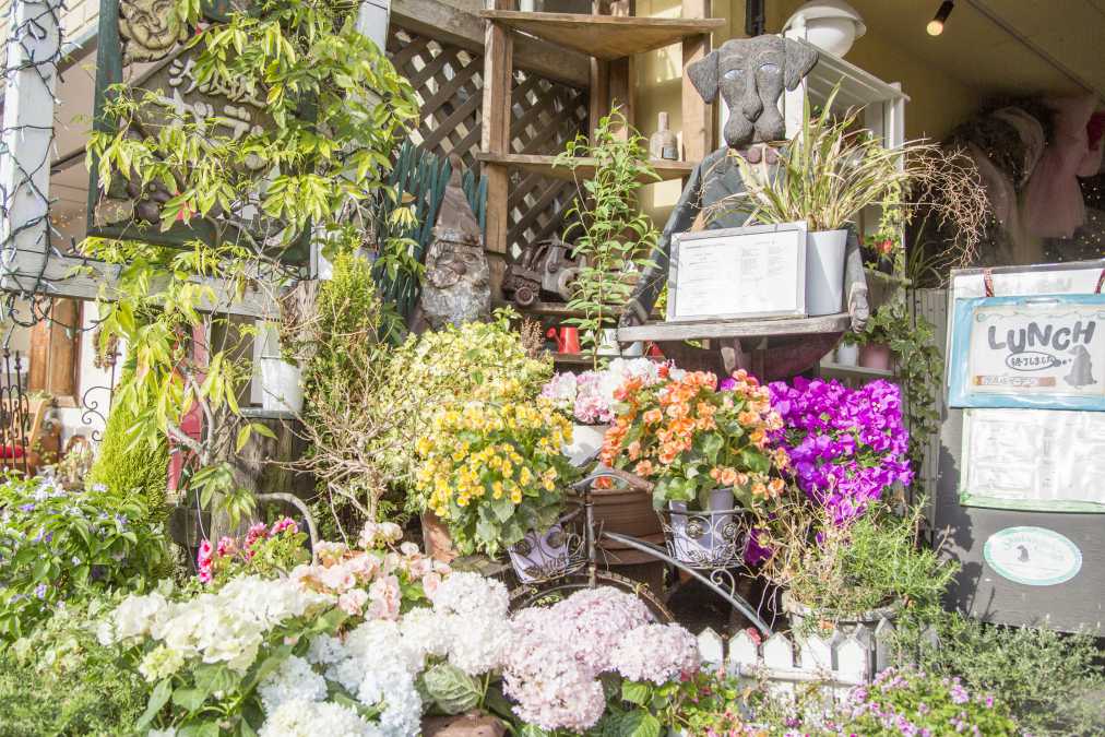 テラス席には、さまざまな種類のグリーンや季節のお花がいっぱい。自然の風が心地よく、開放感たっぷりです。