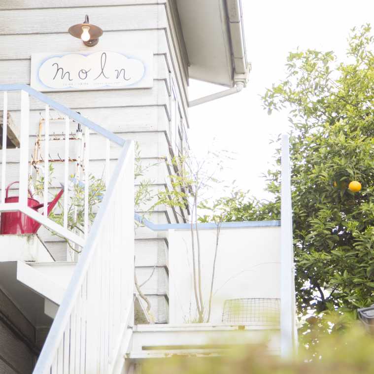 「moln」とは、「雲」を意味するスウェーデン語。入口へと続く階段もとってもキュートで、なんだかワクワクしてきます。