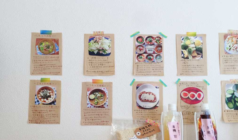 壁には味噌レシピがずらり。これでアレンジレシピもばっちりです。簡単でおいしいと大変好評なのは、アボカドの味噌漬け。ぜひ家でも実践してみたい!