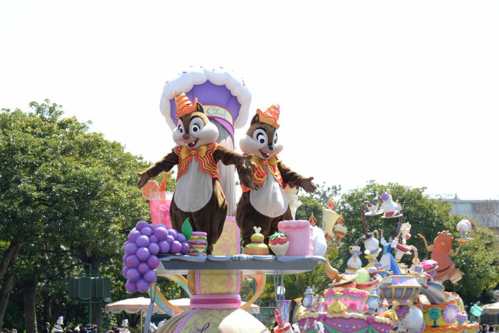 さらに、このパレードの各フロートには隠れミッキーがいるとのこと。例えばこのチップ&デールが乗るお菓子を乗せたフロートでは、チップの足元のケーキの上に!見つかりましたか?ほかのフロートでも探してみてくださいね。