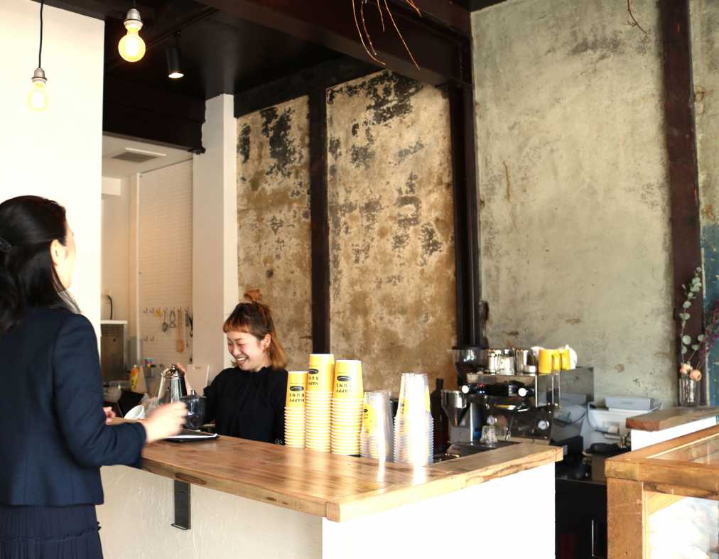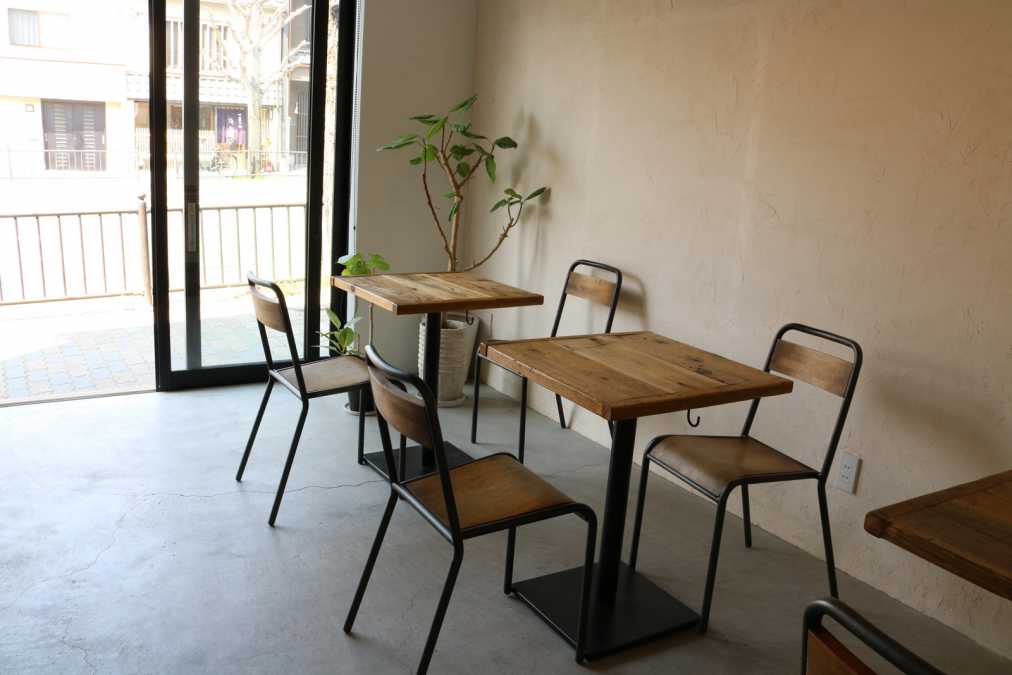 この場所、もともとは住居として使われていた古い建物。母体のデザイン会社が、あえてレジ側の壁は風化したままの状態を残し、食卓側の壁や床はすっきりとリノベーション。味のある、居心地のいいカフェに生まれ変わりました。