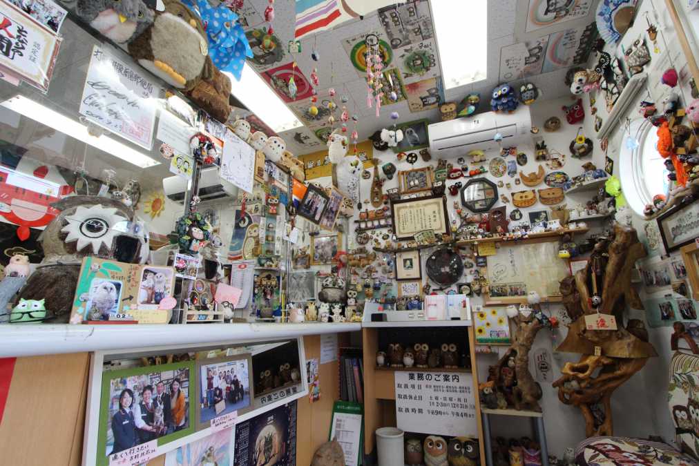 福を授かった人々はお礼にと、フクロウのぬいぐるみや絵などを寄贈。その数はどんどん増え、いまや2100羽以上のフクロウが局内に!