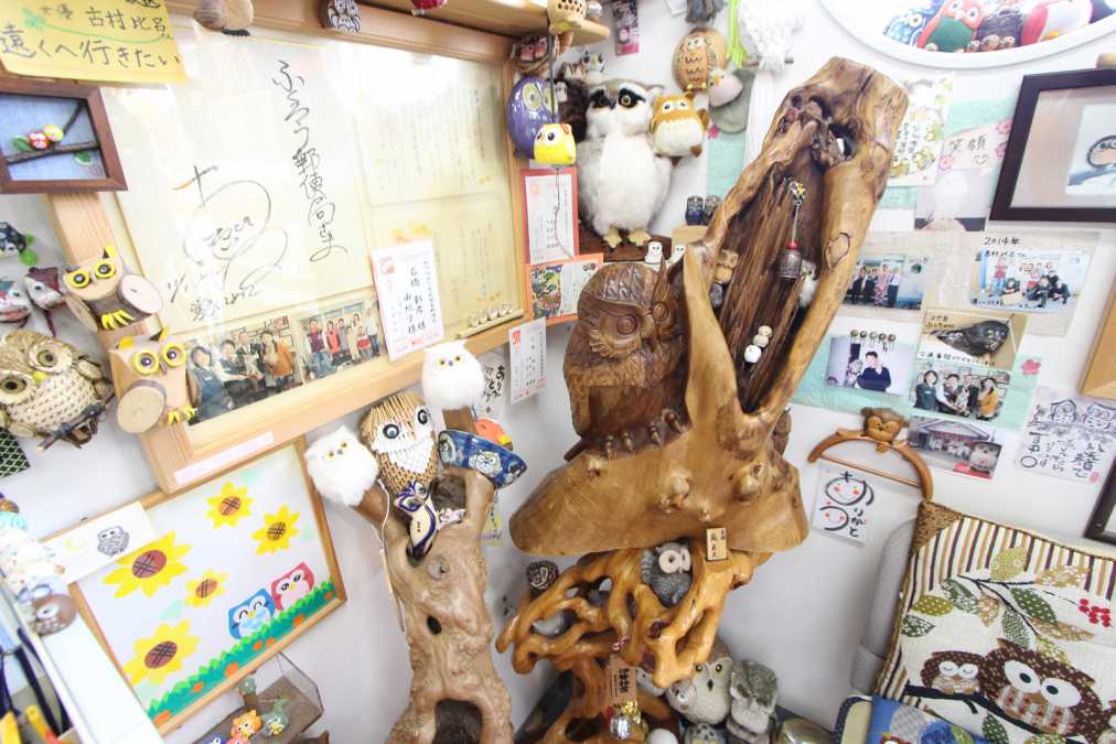家族の一員として大切にされたポッポちゃんの話を聞いたお客さんから、「お友だちに」と、フクロウの置物や雑貨などが次々に寄贈されるようになったのだとか。