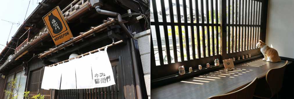 築90年の古民家を改装して作られたそのたたずまいは、レトロな街並みにピッタリ。暖簾をくぐると、店内の至る所に飾られたキュートな猫グッズがお迎えしてくれます。窓際の席には思わず本物と見間違えてしまう猫の置物も。風情ある格子と一緒に撮影すればフォトジェニックな一枚になること間違いなし!