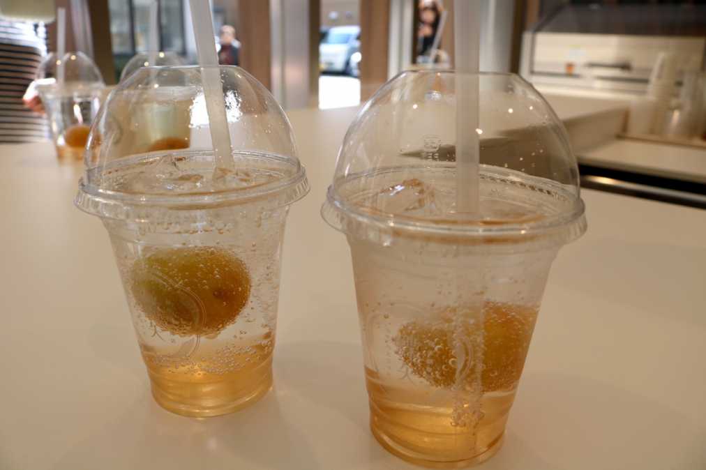 テイクアウトのドリンクはシンプルにホットドリンク400円と、大粒のフローズン完熟南高梅入りアイスドリンク500円の2種類。ホットはお湯、緑茶、紅茶割から、アイスは水、ソーダ、緑茶、紅茶割りから選べます。暑い日にはさっぱり、寒い日はカラダを芯からあたためてくれる梅ドリンク。リフレッシュできて最高ですね!