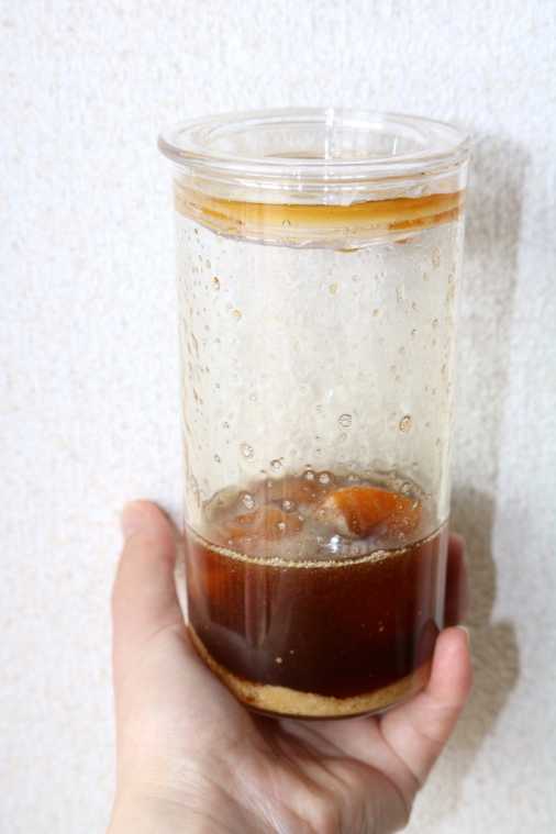 梅と氷砂糖が溶け合って、シロップになっている様子。