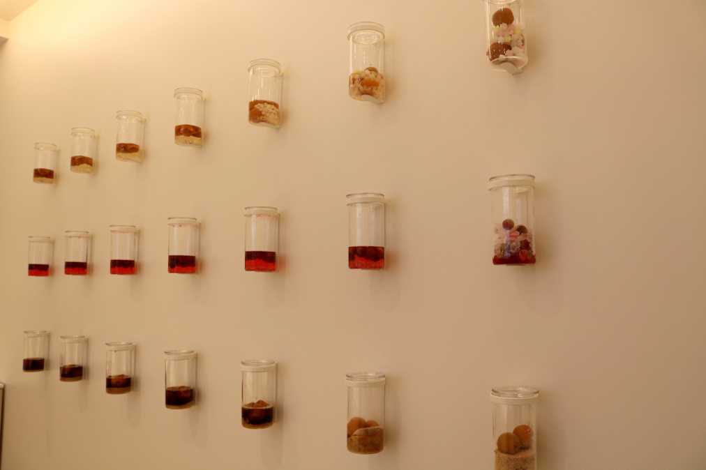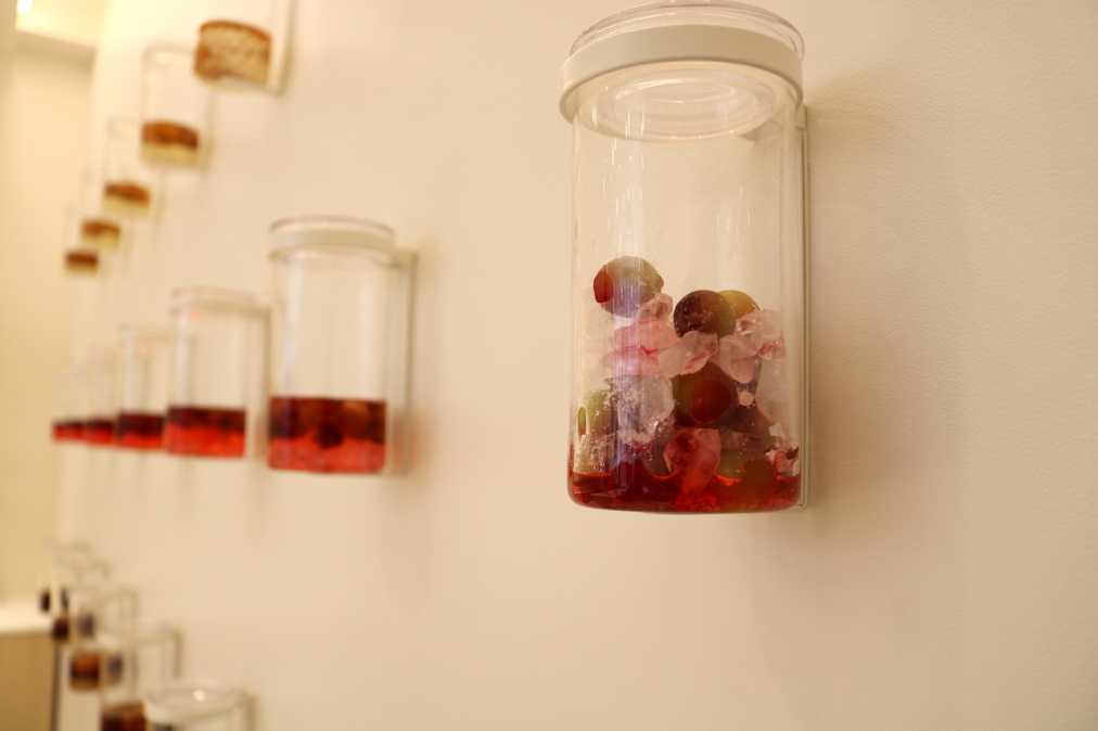 店内には、1日ごとに溶け合って変化していく様子を展示してあります。スタッフが、毎日くるくると回して、1日目、2日目と場所を移動させていっているそう。