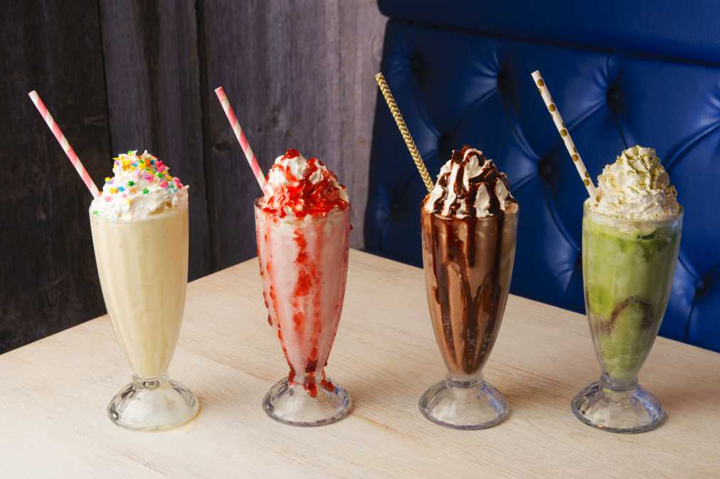 ボリューミーな「ファンシーミルクシェイク」を飲みきる自信がないという人には、こちらの「ミルクシェイク」(各680円)がおすすめ!味はバニラ、ストロベリー、チョコレート、抹茶の4種類です。