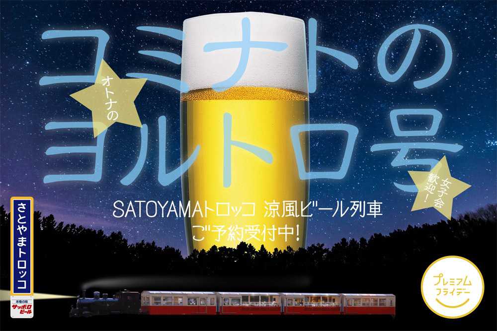夜の田園を走りぬける、時速25kmのオープンビアガーデン!2017年の試行運転で好評を得たSATOYAMAトロッコ「涼風ビール列車」が、本格運行を開始しました。2018年4~9月のプレミアムフライデーの夜に運行する、特別なトロッコ列車にあなたも乗車してみませんか?