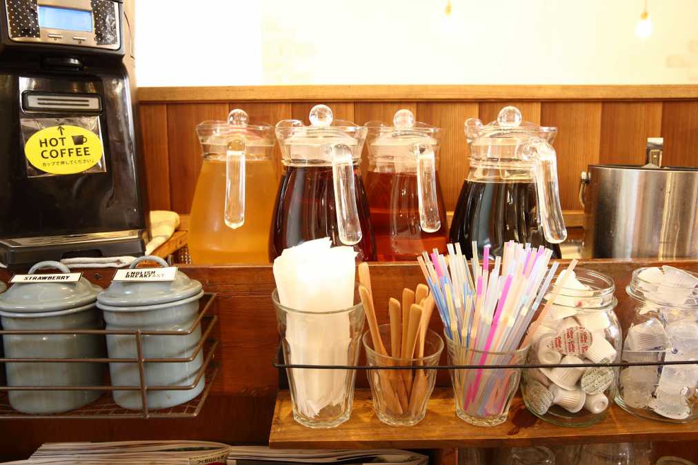 ランチはすべてドリンクバー付き。コーヒー、紅茶、お茶、リンゴジュースなどから自由に選べます。