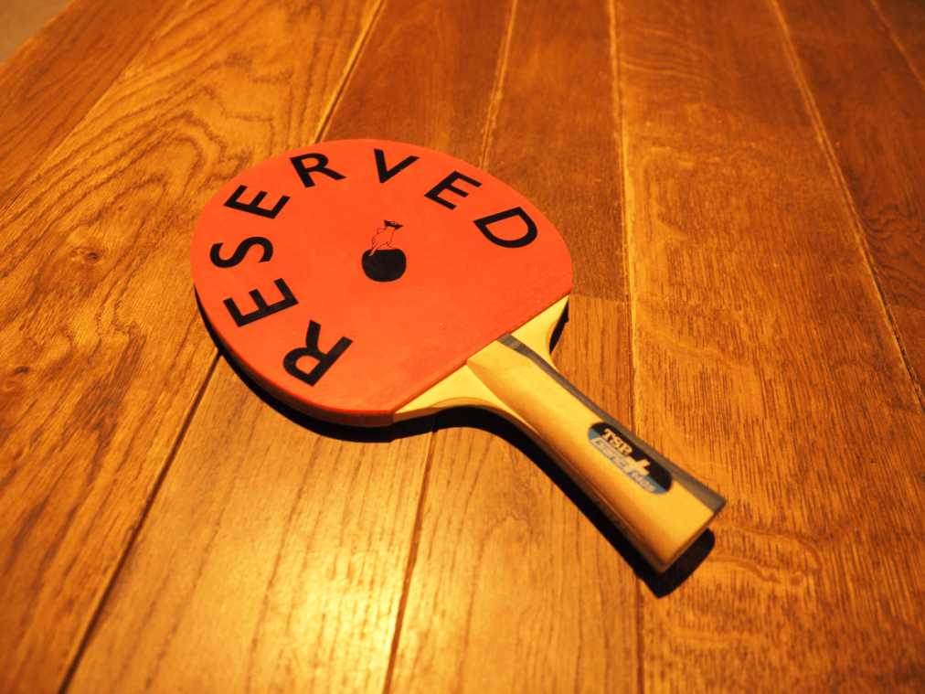 店内の至るところにある、卓球をモチーフにした小物やアート作品も見どころ!予約札は卓球ラケットをそのまま使用するなど。ユニークなアイデアは見ているだけで楽しくなります。