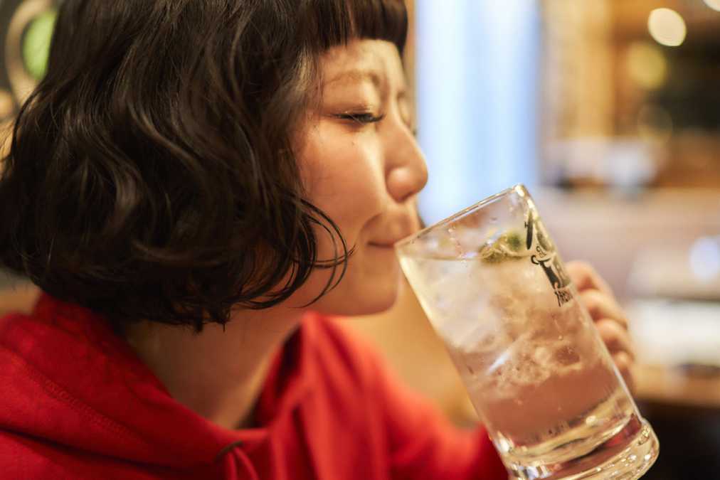 「“煮ジル”ハイボール(730円)」。「1杯目はビール!」と行きがちですが、ビールは糖質たっぷりの“醸造酒”。まずは糖質ゼロの“蒸留酒”であるウイスキーや焼酎ベースのお酒を頼みましょう。