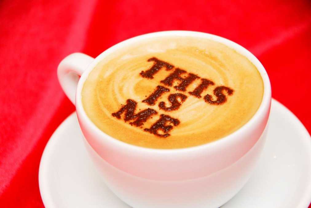 映画のロゴや名曲がデザインされたラテ「The Greatest Showman&This Is Me ラテ」各700円。2つのデザインから好きなものをチョイス(写真は「This Is Me ラテ」)。