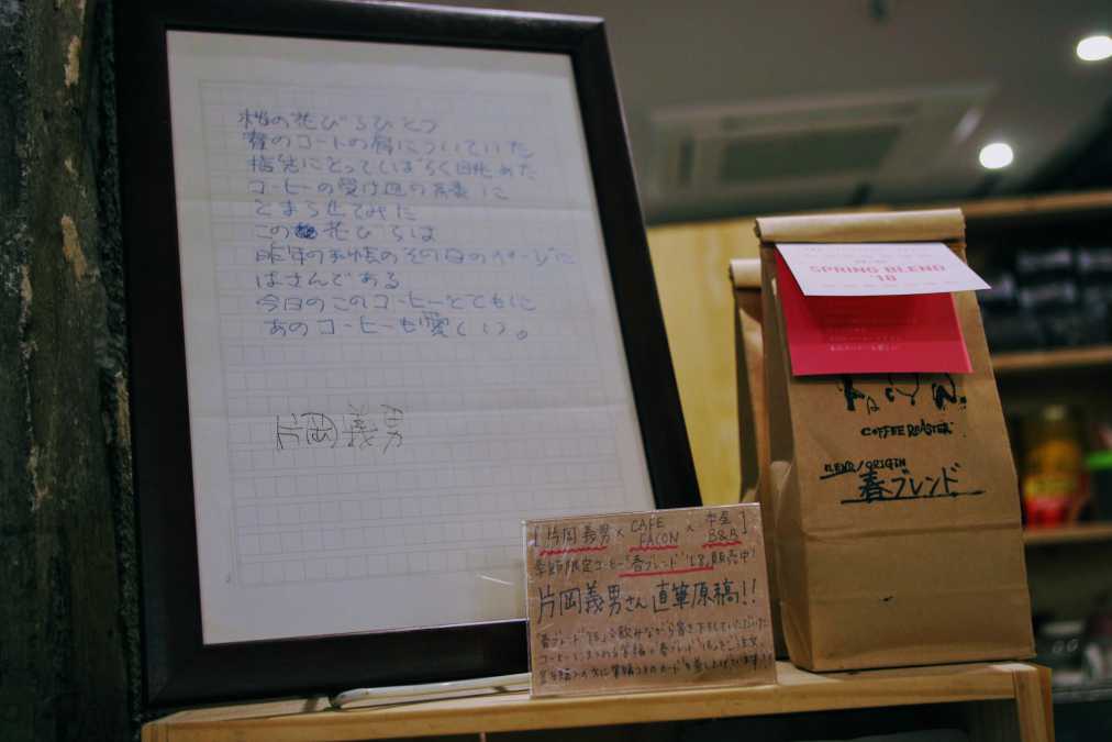 イベントには、著者と読者が直接話せる機会をつくれたら、という願いが込められています。カウンターに飾られたゲストの直筆原稿。