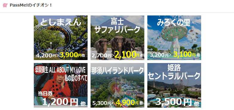 *「PassMe!(パスミー)るるぶレジャーチケット」はとしまえんや八景島シーパラダイスなど人気観光スポットの入場チケットを探せる割引レジャーチケットサイトです。※入場チケットを購入できる観光スポットや割引率は時期により異なります。
