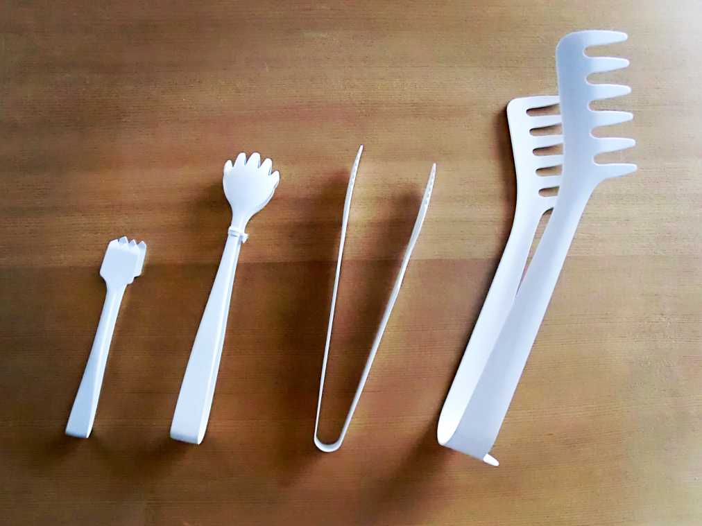 日本一の金物の街、新潟・燕三条のメーカーと「Baise」が共同開発した白いトングシリーズも大人気。角砂糖、レモン、氷、ケーキなどをつかむ全8種類が810円~揃っています。とくにミニサイズの白いトングがかわいい!
