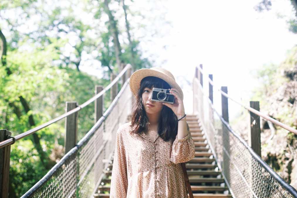 7つの滝を巡る途中にある橋も、とても素敵なフォトスポット。橋は左右対称を意識して、人物を真ん中にして撮る日の丸構図で撮ると、きちっと感がでます。