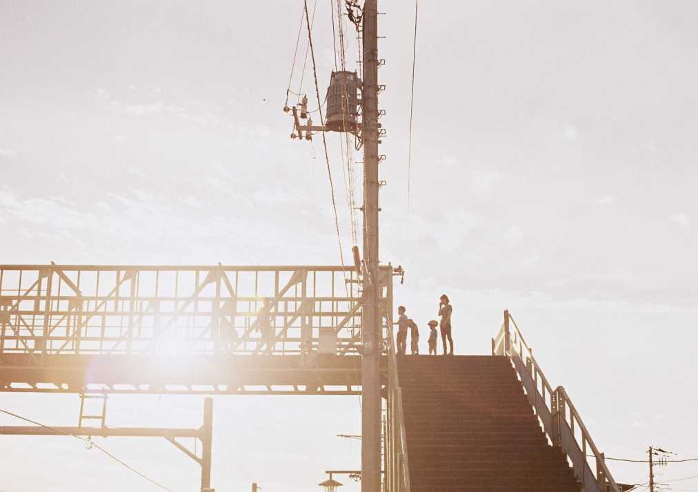 夕焼けが絶景の三鷹駅から西に少し歩いた場所にある、三鷹電車庫跨線橋(東京都)
