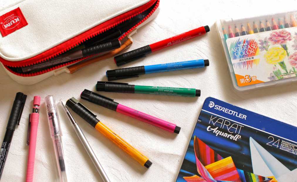文房具屋さんにいくと、インクの色や線の細さ、ペン先のすべり具合や持った時の重さ…本当に様々な筆記具があります。それぞれが持っている「持ち味」を意識しつつ、いろいろ試しながら、自分だけの1本を見つけてみてください。