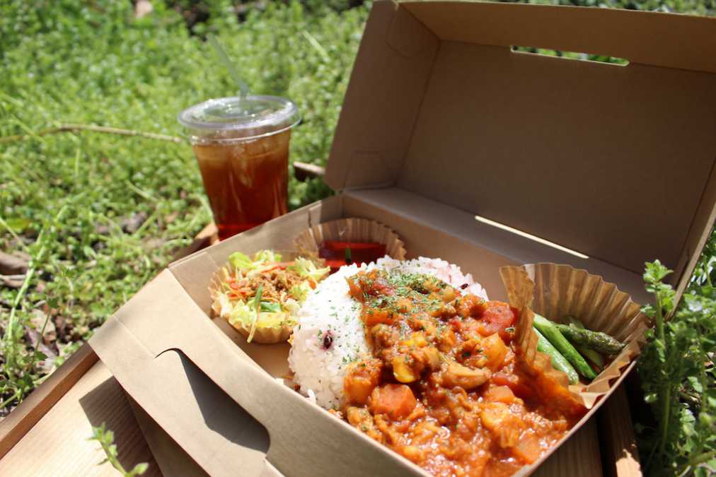 広大な敷地を持つ「キトクラスカフェ」では、森の中でも食事が楽しめるんです。好きなメニューをランチボックスに詰めてもらって、ピクニック気分で散策へ。