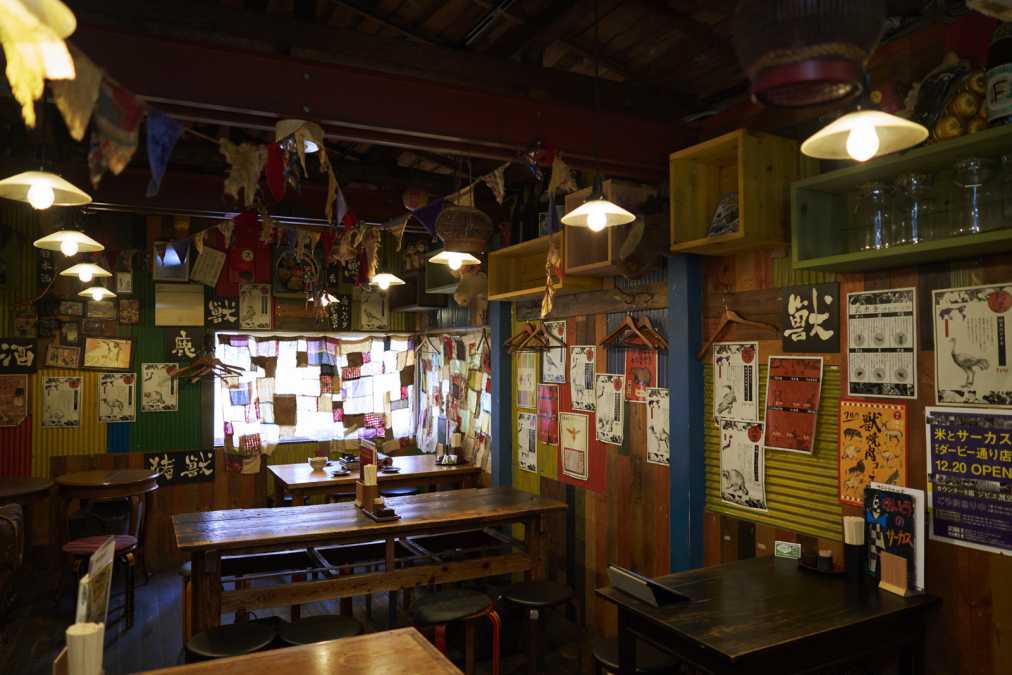 ポップな配色と木材が可愛い店内は、1階はカウンター、2階はテーブル席となっていて一人でも大人数でも楽しめます。外の席なんてのもあってそちらもオススメ。