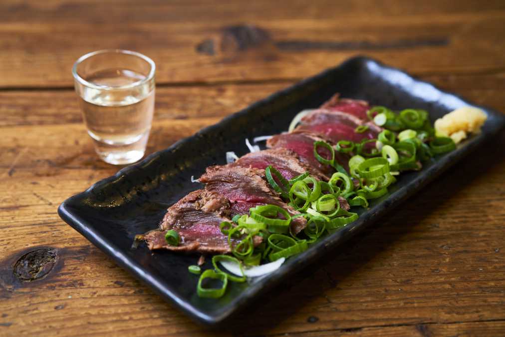 さて続けてご紹介します。「カンガルーのたたき(880円)」と「生姜酒 ショット(490円)」。