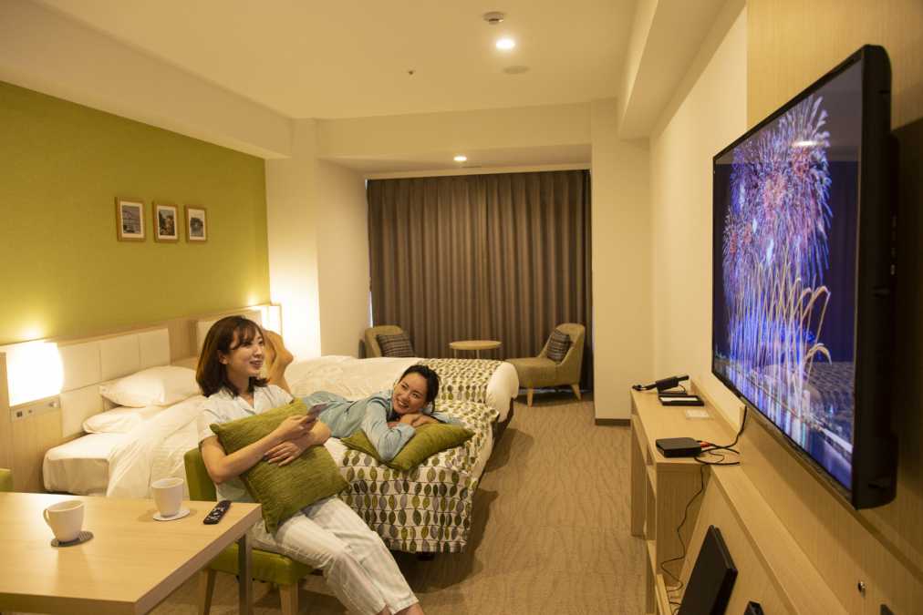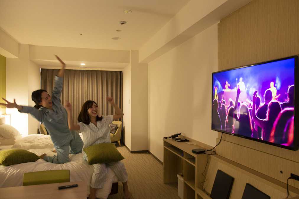 ホテルの部屋に戻ったら、部屋着に着替えてリラックス。今日の夏祭りで撮影した動画や写真をテレビに写して、大画面で鑑賞タイムといきましょう。「Smart Box」はキャスト機能を備えているので、自分のスマホとの連携が簡単にできます。その日の思い出を語り合える、素敵な時間になるはず。