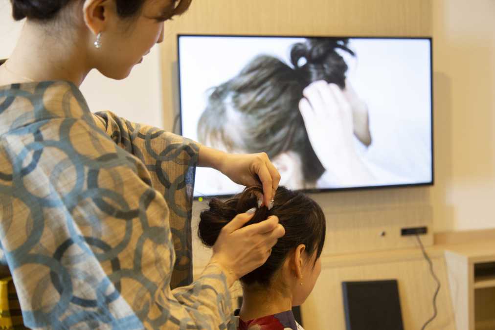 着付けと同じく、ヘアアレンジも動画サイトで簡単検索。スマホを手に持つ必要もないですし、大画面で手先の動きまでしっかり見えます。動画で便利に楽しく準備ができたら、さぁでかけましょう。