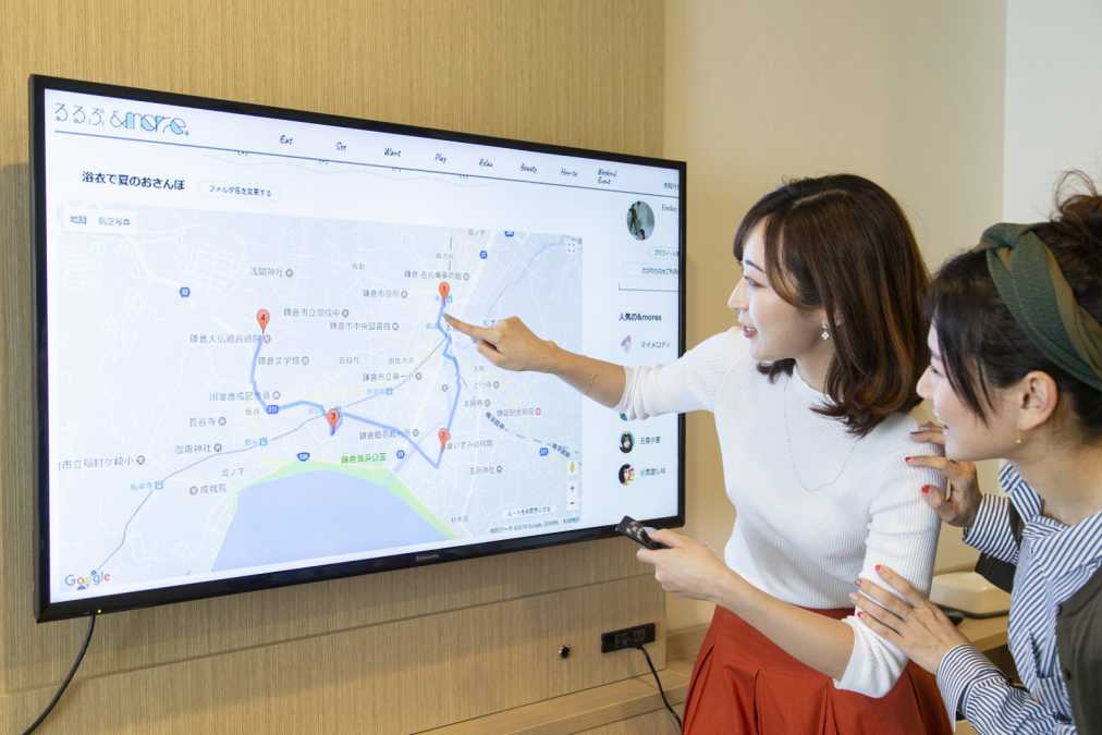 音楽でリラックスしたおかげか、翌朝の目覚めもスッキリ!おでかけ前に、今日の観光ルートのおさらいです。大きな画面で見ると行きたい場所までの距離感もよく分かって計画が立てやすいですよね。お昼はどの辺りで食べようか?なんて相談も大人数でできます。