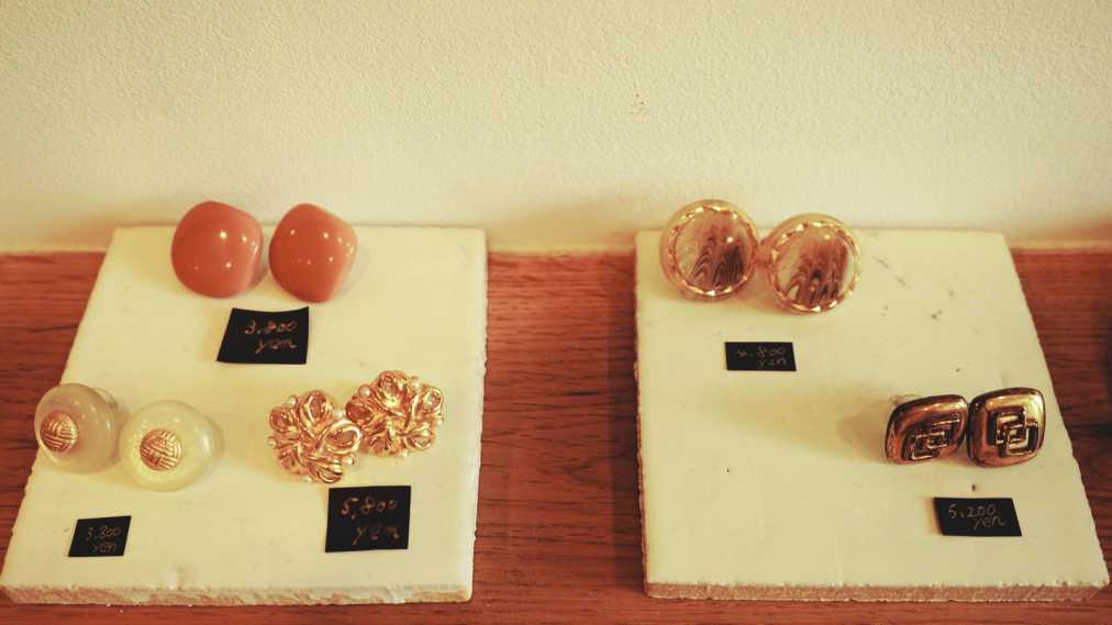 「ブリックレーン」には、アクセサリーデザイナーである店主の奥様による作品もたくさん並んでいます。どれもパリのアンティークパーツなどをベースに作られたもので、とても上品な輝きを放っています。