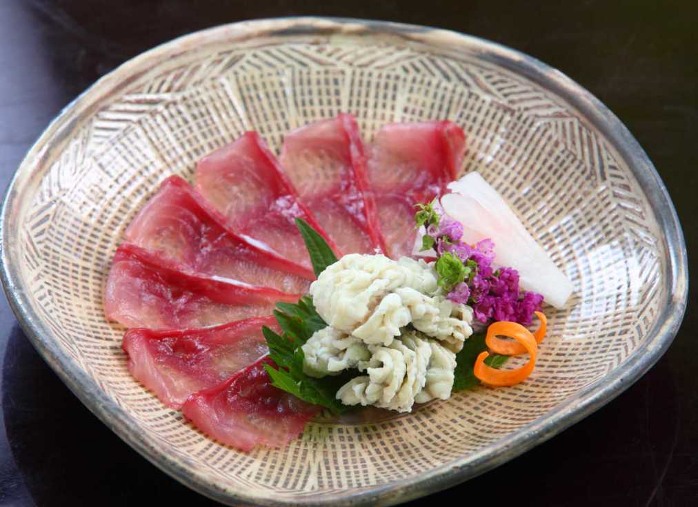 写真は歯ごたえのいいコイのうす造り。そして、ハモかと思いきや、珍しいウナギの落とし。貴船川は川魚料理をいっそうおいしくしてくれます。