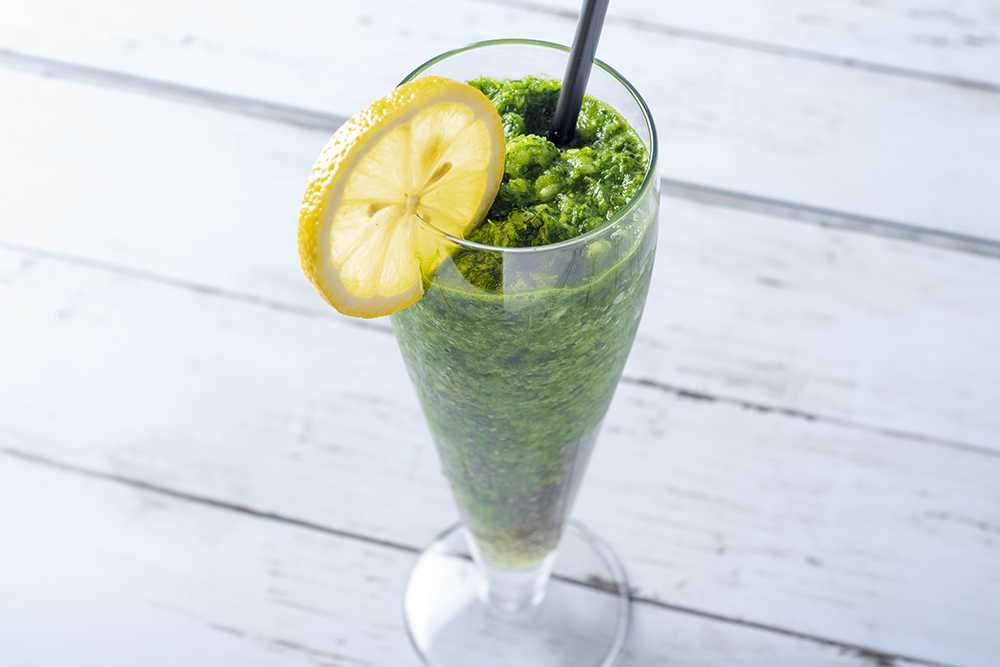 小松菜やキウイ、スピルリナなどの野菜や果物がギュッと凝縮されたドリンク「飲むサラダ」1404円はいかが?飲み放題メニューには含まれないものの、オーダーする価値あり!