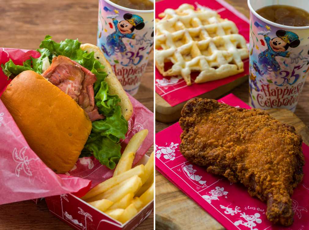 ローストビーフとポテトサラダを挟んだサンドイッチ「ローストビーフサンド&フレンチフライポテト」(ドリンクとのセットで1050円)や、スパイスの効いたチキンともちもちとした食感が特徴のワッフルを組み合わせた「フライドチキン&ワッフル(ベーコン&チーズ)」(ドリンクとのセットで1130円)を販売。