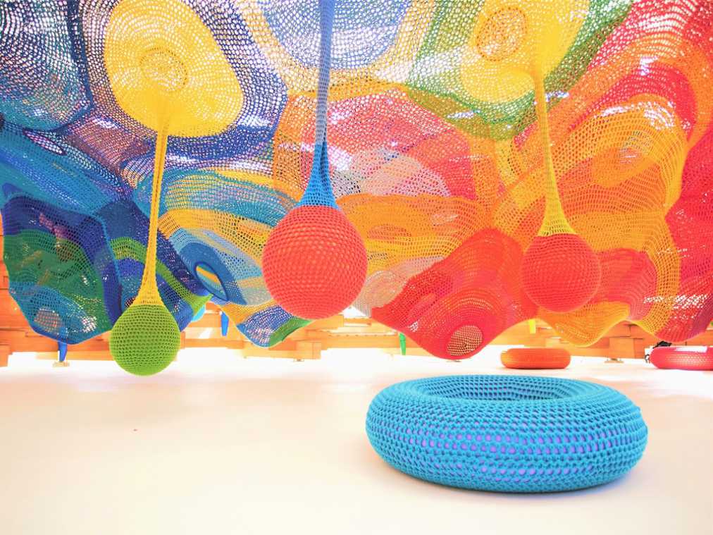 高さ7m、幅20mの「ネットの森」は、さながら巨大なハンモック!しっかりとした素材なのによく伸びるんです。これらのネットはすべて手編みされたもので、完成までに約2年もかかったそう。
