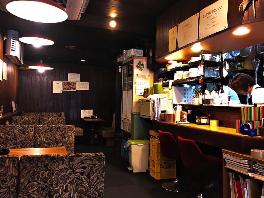 昭和の香りが漂う昔ながらのソファ席が並ぶ店内には60年代のロックミュージックが流れます。長く通う地元のファンもいれば、若い女性やカップルも多く、昼間には行列ができるほどの人気ぶりです。