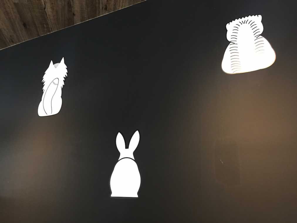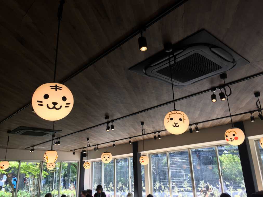 ライトが動物の顔になっていたり、壁一面にまん丸な後ろ姿が描かれていたりと、内装もかわいいんです。