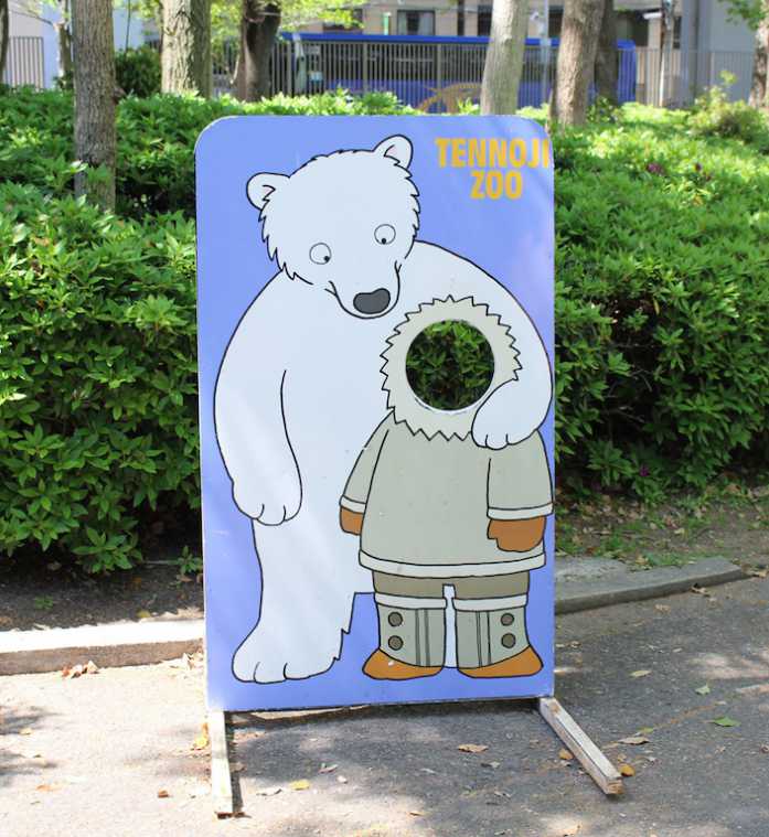 ホッキョクグマ舎のそばに顔出しパネルを発見!子どもに交じってしっかり記念撮影しちゃいましょう。
