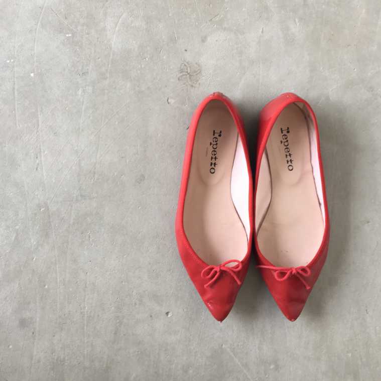 雨の日、真っ先に制限されるのが靴。もちろん、長靴は安心だし、最近は可愛いデザインが多いので、むしろお気に入りの一足を備えておくといいと思うのですが、カジュアルすぎる格好で出かけたくない日や、雨が途中でやんだときのことを考えると、長靴以外の選択肢も必要になってきます。そんな時、私はエナメルのフラットシューズを。台風や雪の日は別として、多少の雨なら濡れても汚れても拭けばOKだし、先のとがったポインテッドトゥならフラットでも脚がすらりと見えます。色は定番色でもいいのですが、きれい色ならそれだけで雨でも気分が明るくなりますよね。