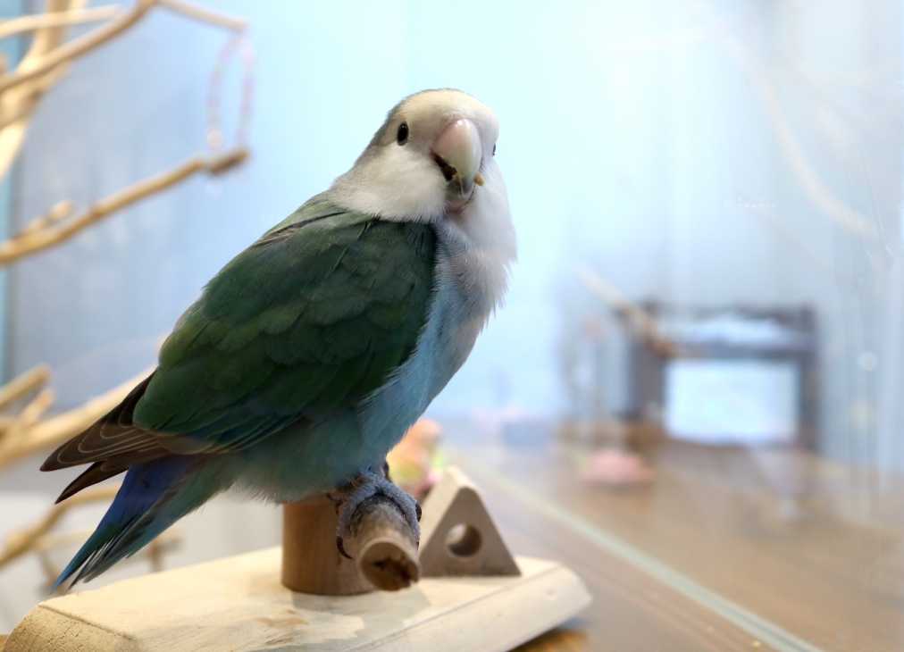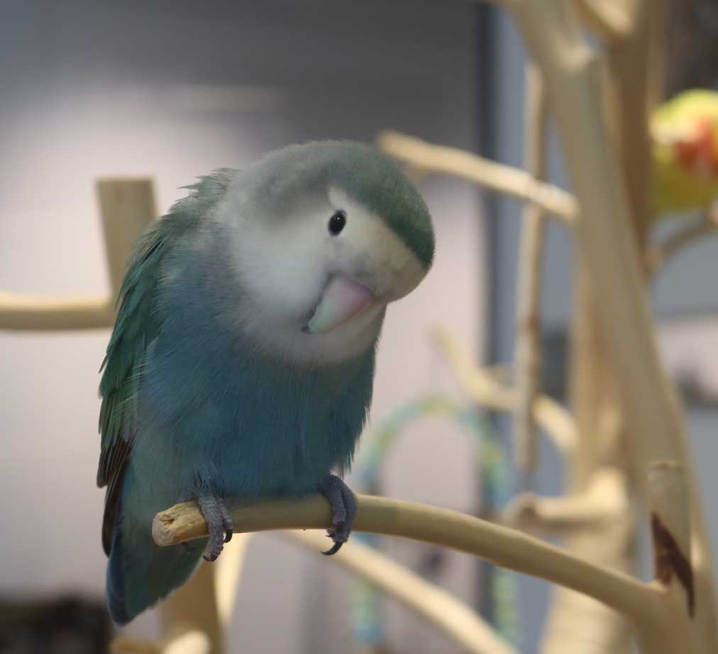 緑色の羽と赤いフェイスのコントラストが美しい「そうちゃん」は4歳の男の子。家の事情でどうしても飼えなくなった飼い主さんからもらわれてきたので、まだ生活のリズムに慣れずにお昼にうとうとしていることも。そんな姿もかわいいですね。