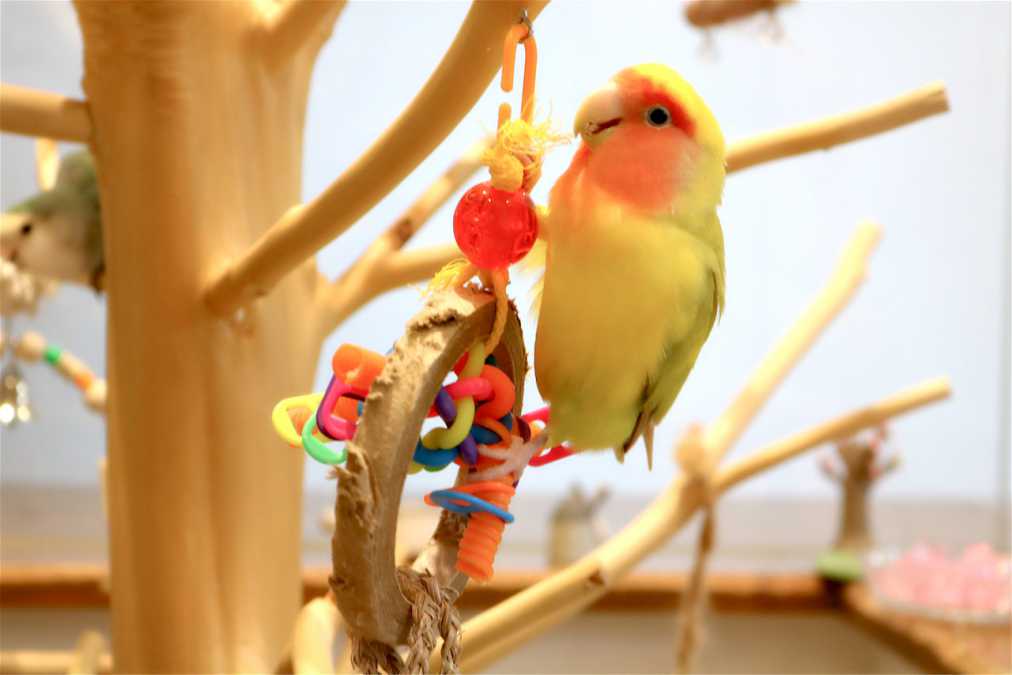 個性があってカワイイ、3羽のコザクラインコがお出迎え