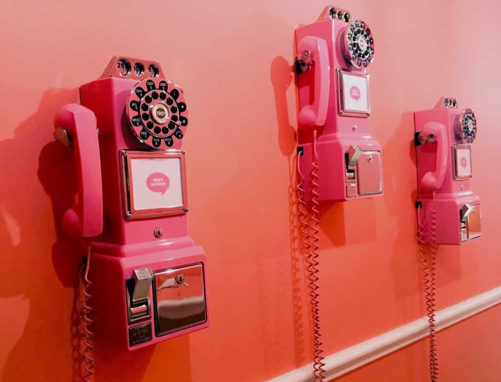 店内にはぜひアイスと一緒に写したい写真映えスポットがたくさんあります。なかでもこのガーリーな電話はインパクト大!アイス片手に、モデル気分で友達と撮影を楽しんで。