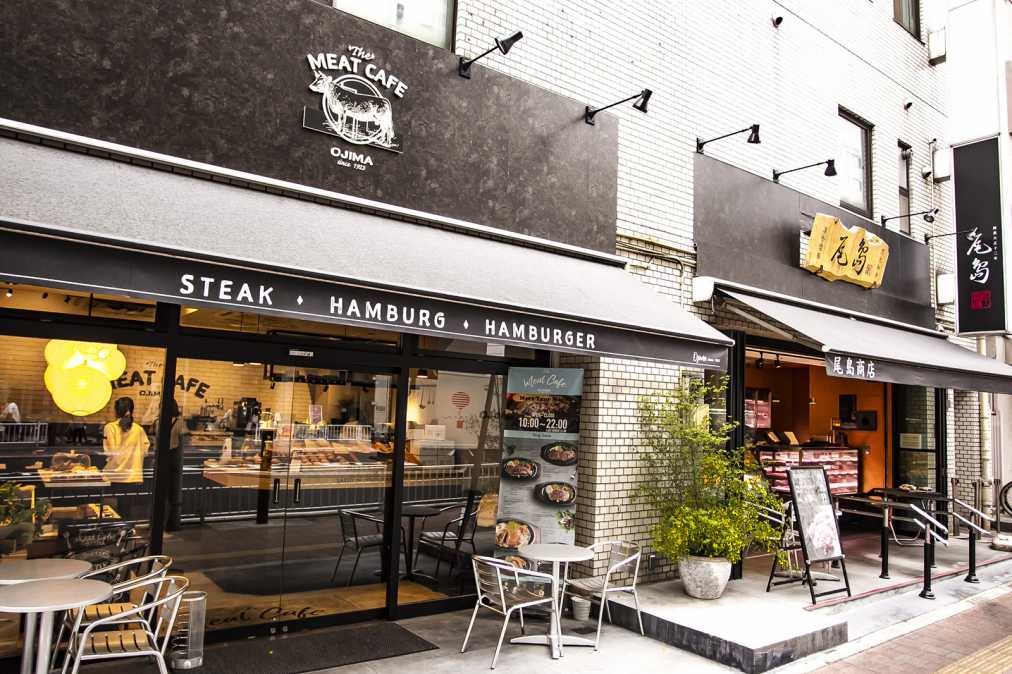 場所は桜木町駅近く、横浜随一の飲み屋街が広がる野毛地区。尾島商店本店の隣にあるのがMeat Cafe OJIMA(ミート カフェ オジマ)。ニューヨークのコーヒーショップを思わせるシックな佇まいです。