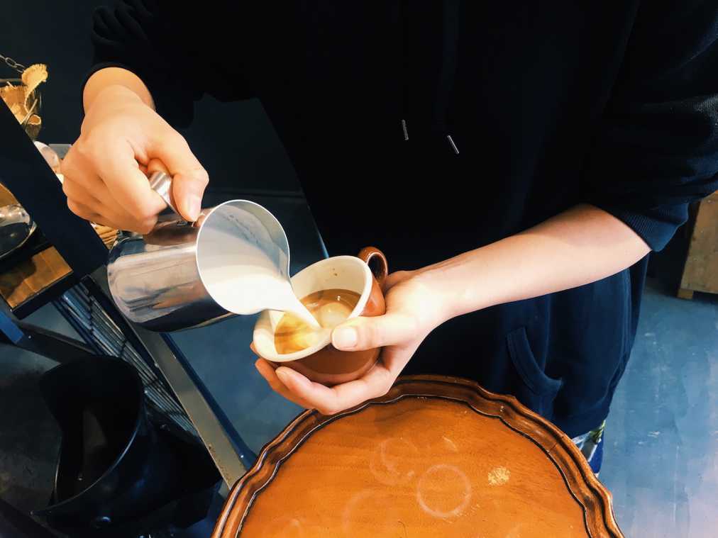 今回教わったバリスタの藤宮さんいわく、ラテアートを上手に作るコツは、ミルクを大胆に真ん中から注ぐこと。少しずつ注いでしまうとコーヒーとミルクが混ざってラテの表面のコントラストが弱い仕上がりになってしまうそう。