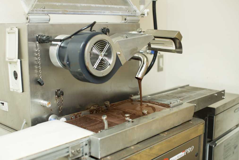 こちらは、「加藤工業」が開発・製造したチョコレートのテンパリング(温度調整)とコーティングを行う機械。もちろん「チョコレート ブランチ」のチョコレート作りにも使用されています。
