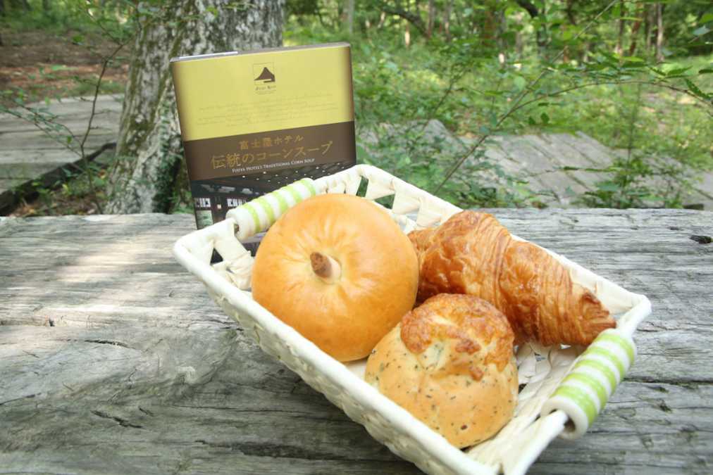 夕食はポーラ美術館・レストラン「アレイ」にてブッフェ形式の料理を、朝食は箱根の老舗「富士屋ホテル」より焼きたてパンとスープが提供されます。